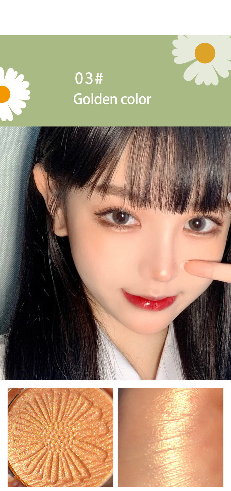Monochrome Colorful Highlight Palette,Ginger Tone Shining Powder Face Brightening Stereoscopic Face Repairing